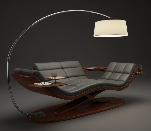 Fernando Pessoa: "Contemplo este objeto, vendo mais que forma e função. É uma quietude talhada, um refúgio para a alma cansada. Não é só mobiliário, é um porto. A madeira cerejeira, em cone, sustenta o ninho do repouso. De sua base cônica, surge a curva grácil da chaise, onde o couro cinza-escuro acolhe a fadiga. Cada costura convida à entrega na superfície macia. Do mesmo âmago, ergue-se o arco de metal, prata ou ouro – não importa a cor – como um braço que abençoa o recanto. Lá no alto, o abajur, um cálice de luz velada em creme etéreo, difunde clareza, acariciando o ambiente. É a iluminação do pensamento. Ao lado, a pequena mesa, um satélite da comodidade, aguarda o livro que se fecha, o copo que se esvazia, os óculos que repousam, marcando o fim de uma leitura ou o início de uma divagação. Tudo ali, coeso, sussurra sofisticação. É a modernidade, sim, mas com uma elegância intemporal, um convite ao recanto interior, onde a alma se permite ser na quietude que a peça proporciona. Ah, se pudesse reclinar-me nesta forma, e deixar o mundo se desfazer em fumaça, enquanto a luz tênue e a madeira nobre me embalam em um silêncio de ser."